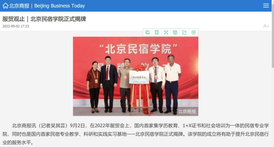 北京广播电视台新闻频道报道北京民宿学院正式揭牌