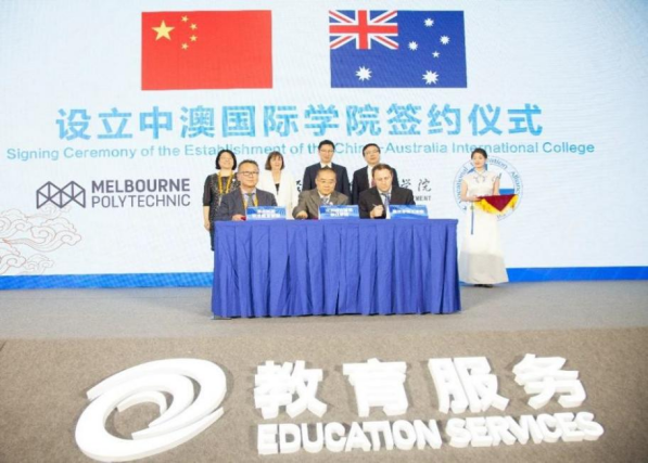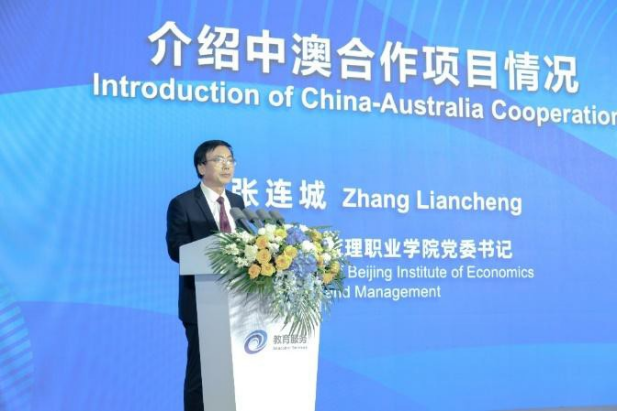 展会期间,学校在北京市教委组织的“职业教育国际化项目推介会”上与澳大利亚墨尔本理工学院签订“中澳国际学院”合作协议。党委书记张连城指出“中澳国际学院”将开展国际化人才培养与师资培训、职业资格开发与认证、教育资源建设与转化等多专业多领域多项目合作,打造中外合作办学新范式,为推动首都职业教育国际化作出经管院新贡献。党委副书记、院长田宏忠代表学校签约。北京市教委副主任孙其军、澳大利亚驻华使馆公使衔参赞温凯灵见证签约。
